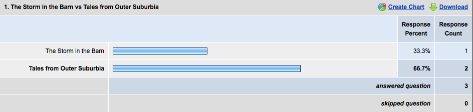 稀な芸術的作品という意味では、Tales From Outer Suburbiaです。けれども、この作品の問題は児童書であって児童書ではないことです。つまり、きちんとしたストーリーがなくて小学生の子どもを混乱させる本なのですよね。Outer Sburbiaを熱狂的に愛する読者はたいてい大人です。School Library Journalのバトルは図書館で子どもに薦める本を念頭に置いていると思うので、そうなると子どもが共感できて感動するWhen You Reach Meが勝つべきです。